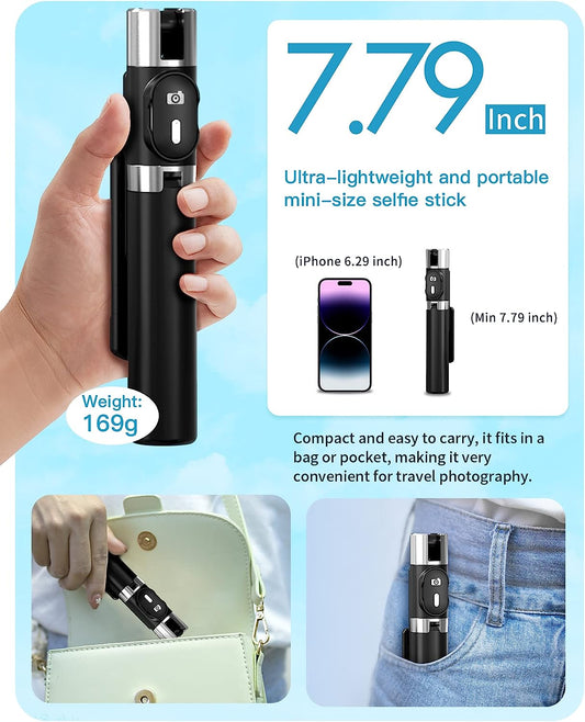 KOMI Selfie Stick - 4 in 1 Selfie Stick Tripod Extendable Phone Tripod Portable with Detachable Wireless Remote Compatible with Iphone Samsung Camera Android (Mini Black)