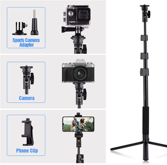 57.48 Inch Extendable Selfie Stick for Action Camera W Smartphone Clamp Extension Pole, for Gopro for Sony Canon Vlogging Cams for Iphone 14 13 Pro Max