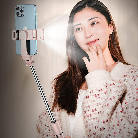 Selfie Stick & Phone Tripod,Mqouny Portable Selfie Fill Light,Portable All-In-One Professional Travel Tripod with Remote, Compatible with Android/Iphone (Pink)