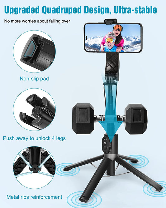 ADYSS Portable Selfie Stick,Ladies Selfie Stick with Tripod,With Fill Light and Wireless Remote, 3 Modes Selfie Stick Mode/Desktop Mode/Ground Mode,Supprot Camera,Selfies/ Vlogging/Live