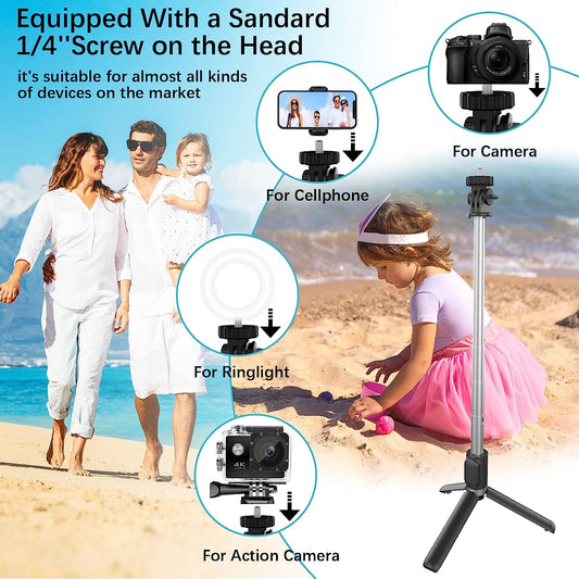 Versatile 40" Selfie Stick Tripod with Wireless Remote Portable Extendable Phone Stand for Iphone, Android & Camera – Perfect for Travel Vlogging Selfies Youtube and More