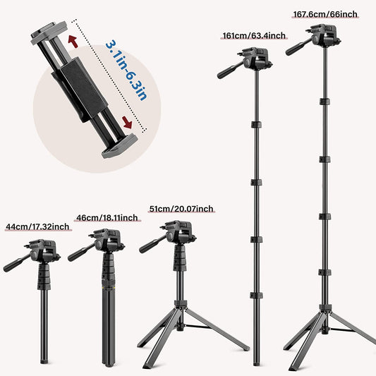Torjim 67" Phone Tripod, Extendable Iphone Tripod Stand with Wireless Remote & Phone Holder, Aluminum Selfie Stick Tripod for Iphone/Camera/Gopro