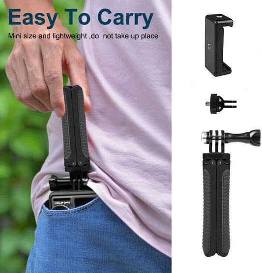 Mini Selfie Stick Tripod Kit 2-In-1, Compatible with Hero 9/8/ 7/6/MAX/OSMO/ACTION Action Cameras and Smartphones, 1/4 Inch Screw Fixed, with 3-Level Telescopic Function Tripod(Black)