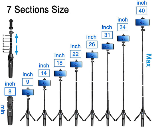 Selfie Stick, 40 Inch Extendable Selfie Stick Tripod,Phone Tripod with Wireless Remote Shutter,Group Selfies/Live Streaming/Video Recording Compatible with All Cellphones