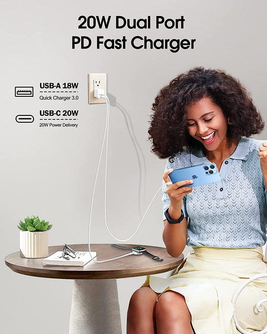 USB C Charger, Apple Watch Charger, Upgraded USB Charging Block, PD Dual Port Type C Power Adapter Block Cube Brick Compatible for New Apple Watch Series 8 7 6, Apple Iphone 13 14 Pro Max SE XS, White