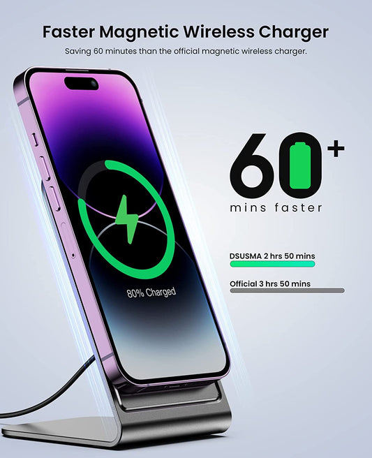 DSUSMA 15W Magnetic Wireless Charger Compatible with Magsafe Charger/Iphone 14/14 Pro/14 Plus/14 Pro Max/Iphone 13/13 Pro/13 Pro Max/Iphone 12 Series, with 20W Power Charger+5Ft Charger Cable(Black)