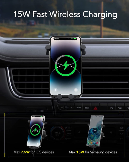 Wireless Car Charger, Baseus 15W Fast Charging Phone Mount for Car Vent, Car Phone Holder with Enlarged Charging Coil for Iphone 14 13 12 11 10 8 Pro Max Xs, Samsung Galaxy S&Note Series Google LG Etc