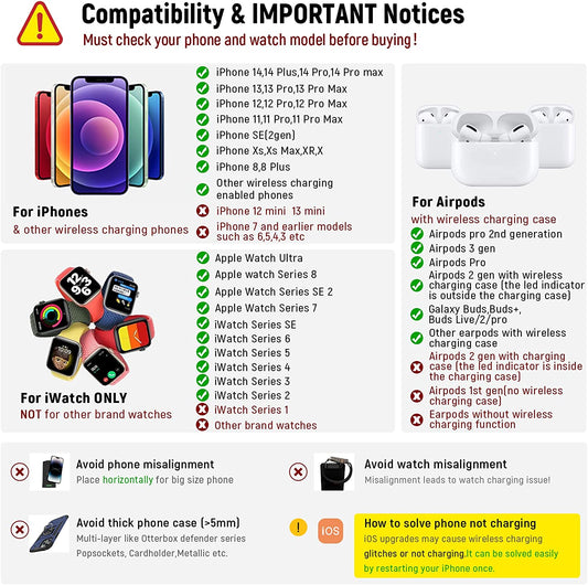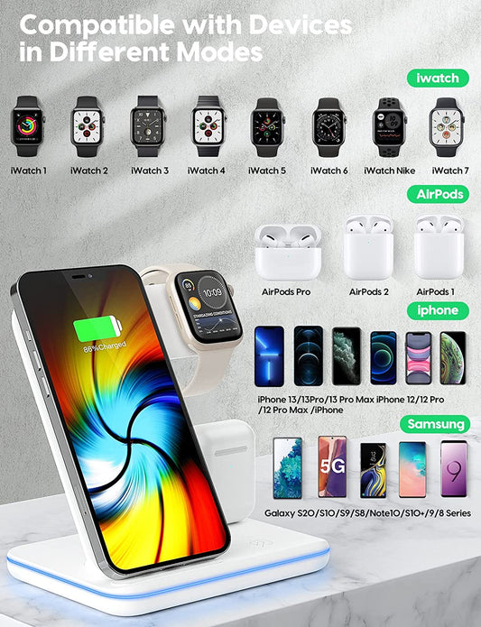 Wireless Charging Station,3 in 1 Fast Charger Stand Compatible with Iphone 14/13/12/11 Pro Max/X/Xs Max/8/8 Plus, Iwatch Series Ultra/8/7/6/5/Se/4/3/2, Airpods 3/2/Pro/Pro 2