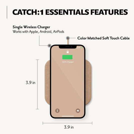 Courant Catch:1 Essentials - Belgian Linen Wireless Charging Pad - Qi-Certified - Compatible with Iphone 14, 13, 12, 11, X, SE, Samsung Galaxy S23, S22, S21, S20, Note, Airpods, Airpods Pro (Camel)