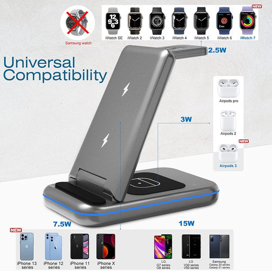 Wireless Charger,Foldable 3 in 1 Fast Wireless Charging Station,Wireless Charger Stand for Iphone 12/14/13/11/Pro/Max/Xs/Max/Xr/Xs/X,Airpods Pro/3/2,Iwatch Series 8/7/6/Se/5/4/3/2Etc