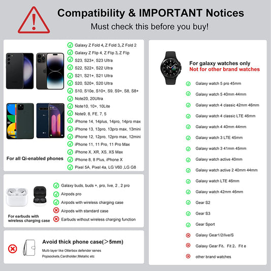 Samsung Galaxy S23 | S23+ | S23 Ultra | S22 | S21 | S20 FE | S10 | S10E | S9 plus | S8 | S7 | S6 Edge | Note 20 | 10 | 9 | 8 | Z Flip Fold 3 Qi-Certified 10W Fast Wireless Charger Charging Stand