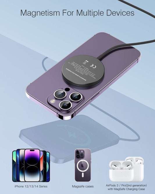 2 Pack Magnetic Wireless Charger Compatible with Magsafe Charger for Iphone 14 Pro Max/14 Plus/Iphone 13 Pro Max/13 Mini/Iphone 12, Magnetic Wireless Charging Pad for Airpods 3/2/Pro,Mag Safe Charger
