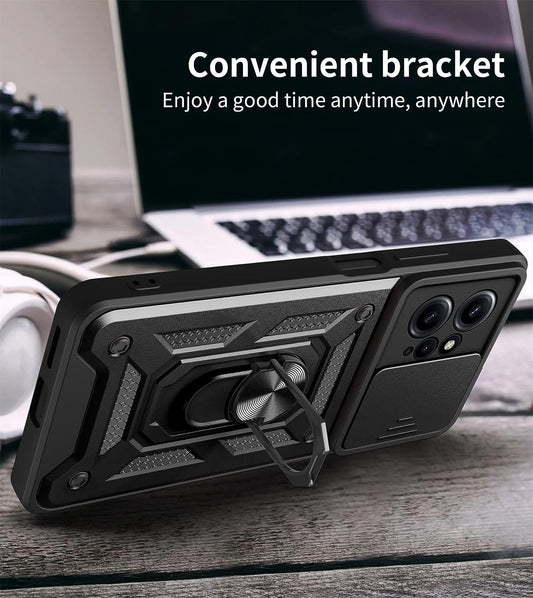 Tncavo Case for Xiaomi Redmi Note 12 4G with Camera Cover, Heavy Duty Rugged Shockproof Protection Phone Cases with Ring Kickstand Xiaomi Redmi Note 12 4G SJ Rose Gold