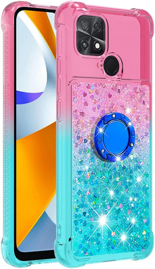 Monwutong Slim Fit Phone Case for Xiaomi Poco C40, Bling Shiny Quicksand Effect TPU Bumper Case with Four Corners Heavy Protection Anti-Fall Cover for Xiaomi Poco C40,Pink Blue