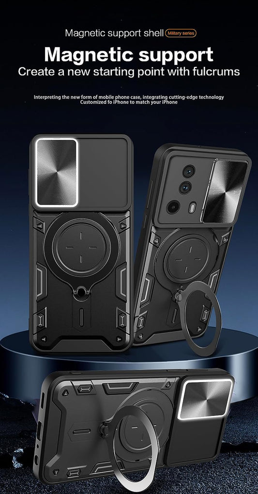 Miimall for Xiaomi 13 Case: Slide Camera Cover, Anti-Slip PC Slim Shockproof Phone Case for Xiaomi 13 5G (6.36") in Black