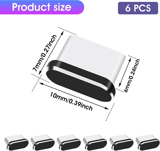WLLHYF USB-Typ-C-Anti-Staub-Stecker, 6 Stück, USB-C-Port-Stecker, Staubschutz, Typ-C-Port-Kappen, Schutz für die meisten Smartphones und Micro-USB-Android-Modelle, Ladeanschluss, Lautsprecher, Anti-Staub-Schutz-Abdeckungs-Set