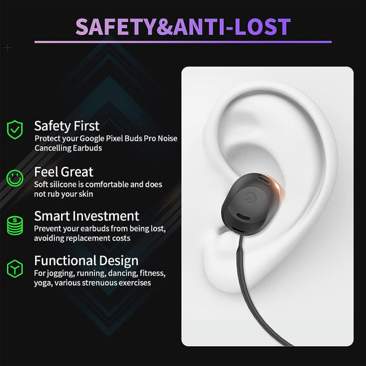 WOFRO Anti-Verlust-Band für Google Pixel Buds Pro-Ohrhörer (2022), Sport-Umhängeband aus weichem Silikon, Zubehör kompatibel mit Google Pixel Buds Pro – geräuschunterdrückende Ohrhörer-Umhängekordel (schwarz)