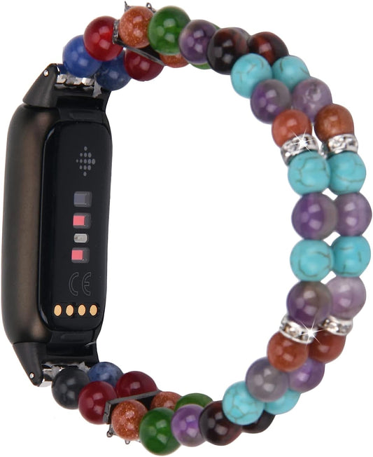 Wongeto Kompatibel mit Fitbit Luxe-Bändern, modisches handgefertigtes elastisches Stretch-Perlenarmband für Damen und Mädchen, Ersatzarmband für Fitbit Luxe-Zubehör (Farbe: Perle)