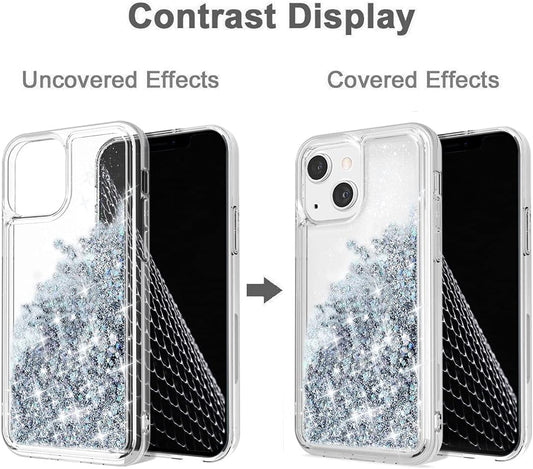 WORLDMOM Kompatibel mit iPhone 13 Hülle, klare Bling fließende Flüssigkeit schwimmende funkelnde bunte Glitzer Wasserfall TPU Schutzhülle kompatibel mit iPhone 13 [6,1 Zoll 2021], Silber
