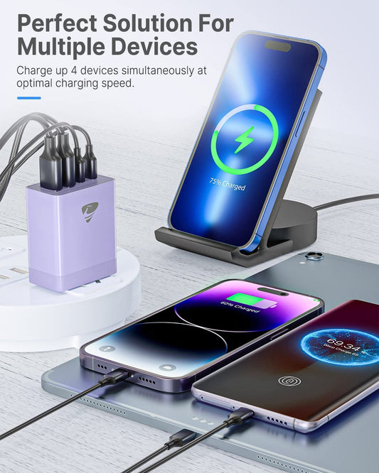 [2er Pack] USB C Ladegerät Block, Aioneus 40W 4-Port QC+PD 3.0 Netzteil, Schnellladeblock Typ C Multiport Stecker USB C Wandladegerät für iPhone 14 Pro Max 13 12 11 X, iPad, Samsung (Rosa und Lila)