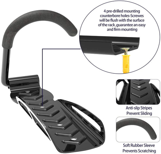 4 Pack Garage Bike Rack Wall Mount Organizer Bike Hook Bicycle Hanger Storage System Vertical Hanging for Indoor Shed Easily Hang Heavy Duty 66 Lbs for Road Mountain Hybrid Bikes with 4 Rack Straps