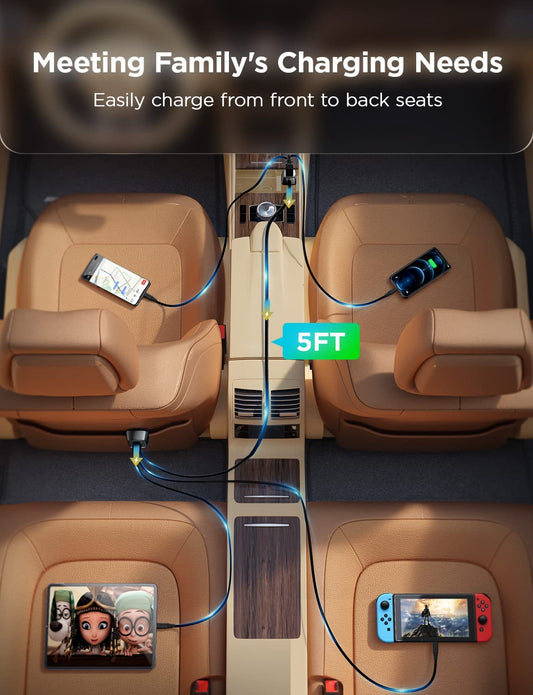 60-W-USB-Autoladegerät – AINOPE [4 Multi-USB-Anschlüsse] [QC 36 W] Schneller Autoladegerät-Adapter [1,5 m Kabel] QC 3.0-Zigarettenanzünder-Adapter, Rücksitz-Aufladung für iPhone, Samsung, iPad, MacBook, Fire-Tablet und mehr