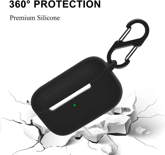 VAEKNVG Silikonhülle für Echo Buds 2023, stoßfeste Schutzhülle für Ohrhörer mit Karabiner-Zubehör (schwarz)