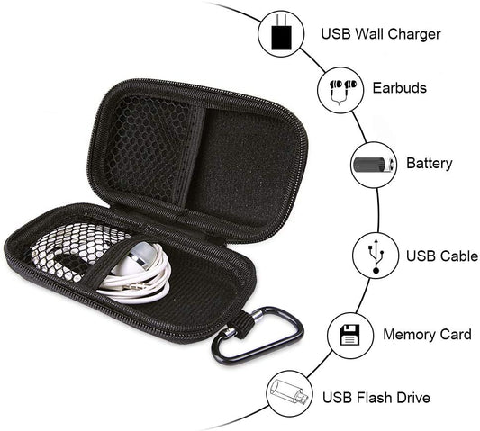 Tragbare harte EVA-Hülle, schützende Hartschalen-Reisetasche von Hootek mit doppeltem Reißverschluss und Metallkarabiner für MP3-Player, USB-Kabel, Kopfhörer, Speicherkarten, U-Disk, Objektivfilter, Schlüssel, Münzen