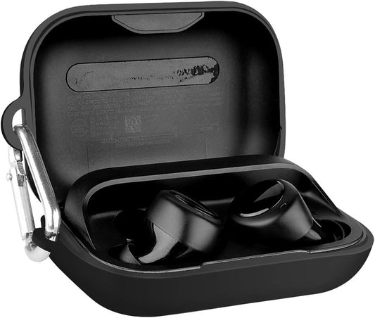 Geekria Silikon-Schutzhülle, kompatibel mit Echo Buds True Wireless Ohrhörern, Kopfhörer-Hülle, schützende Tragetasche mit Schlüsselanhänger-Haken, Ladeanschluss zugänglich (schwarz)