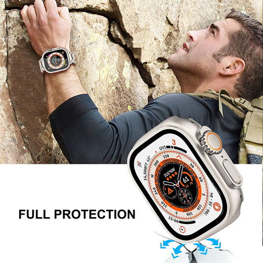 Trumirr Armband + Schutzhülle + Displayschutzfolie für Apple Watch Ultra 49 mm, Starlight, solides Metall-Edelstahlarmband und Abdeckung aus gehärtetem Glas für Iwatch Ultra 49 mm