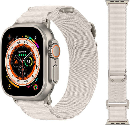 HITZEE Kompatibel mit Apple Watch Band 49 mm 45 mm 44 mm 42 mm, geflochtene Nylon-Schlaufenbänder, verstellbares Sportarmband, entworfen für Apple Watch Ultra Series 8 7 SE 6 5 4 3 2 1, Starlight, L