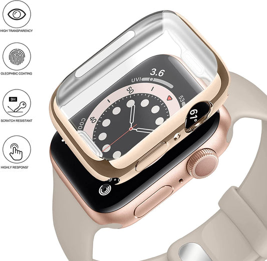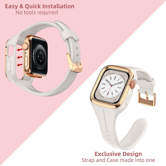 OUHENG Kompatibel mit Apple Watch Band 41 mm 40 mm 38 mm mit Bumper Case, Damen Sportarmband mit robustem Metallrand Bumper und Silikonhülle für Iwatch Series 8 7 6 SE 5 4 3 2 1, Starlight/Roségold