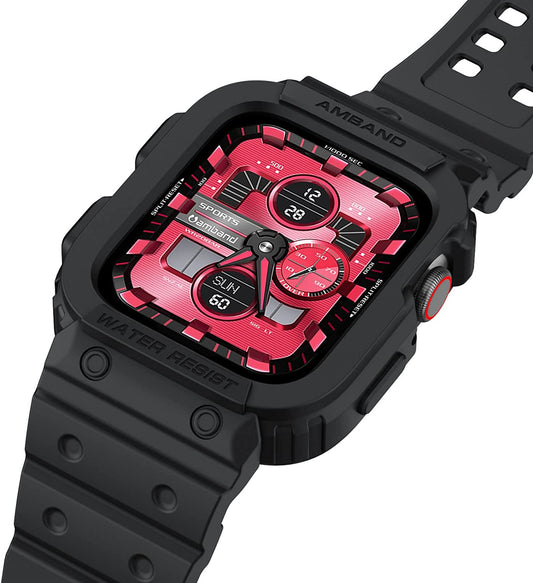 Amband kompatibel mit Apple Watch-Armband 45 mm, 44 mm, 42 mm mit Bumper-Hülle, robuste Herrenarmbänder für Apple Watch SE und Iwatch Serie 7, 6, 5, 4, 3, 2, 1, sturzsichere Sport-Militär-Schutzhüllen, mattschwarz