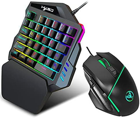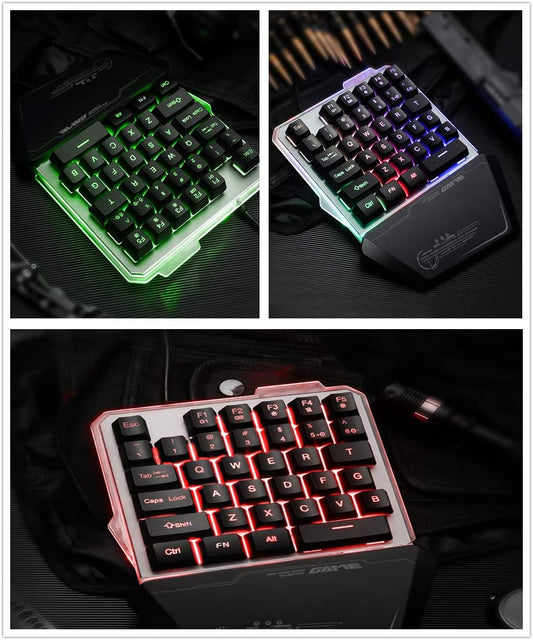 Ouyang RGB Mechanische Tastatur, Einhand-Gaming, 35 Tasten, 7 Farben, LED-Hintergrundbeleuchtung, USB-Kabel, Metallbasis, Gaming-Tastatur für PC/Mac/iPad/iPhone/Smartphone/Laptop, kompatibel mit Windows/Apple-System