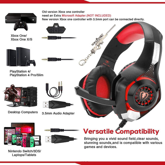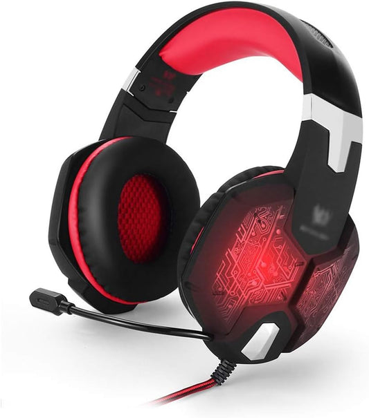 Gaming-Headset mit Geräuschunterdrückung, Hi-Fi-Stereo-Mikrofon, komfortabler Surround-Sound für Laptop, Tablet, Smartphone, Rot