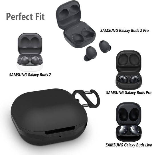 Geiomoo Silikonhülle kompatibel mit Galaxy Buds 2 Pro, Galaxy Buds2, Galaxy Buds Pro, Galaxy Buds Live, Schutzhülle mit Karabiner (Schwarz)
