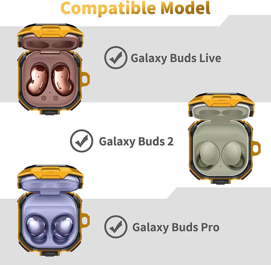 JAKPAK Kompatibel mit Samsung Galaxy Buds 2 Hülle (2021)/ Galaxy Buds Pro Hülle (2021) / Galaxy Buds Live Hülle (2020), Hart-PC, stoßfeste Schutzhülle mit Schlüsselanhänger, sicheres Schloss-Design, Abdeckung, Gelb