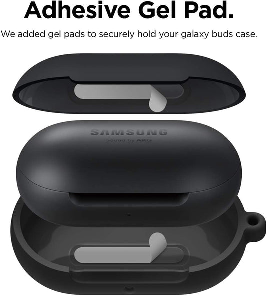 Elago Silikonhülle entworfen für Samsung Galaxy Buds plus Hülle (2020) / Galaxy Buds Hülle (2019) [Schwarz] – Rundumschutz, selbstklebendes Gelpad, kabelloses Laden