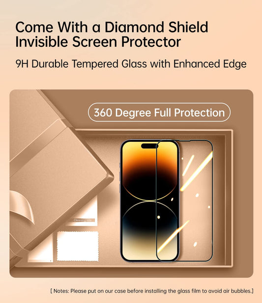 MOZOTER [2-in-1-Hülle für iPhone 14 Pro Max, [3,6 m, stoßfest] [mit 1 Stück Glas-Displayschutz], [robust], durchsichtige Handyhülle, 6,7 Zoll, kristallklar