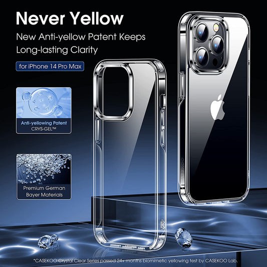 CASEKOO Crystal Clear für iPhone 14 Pro Max Hülle 6,7 Zoll, [Niemals gelb] [Überschreitet Mil-Grade-Schutz], Klar