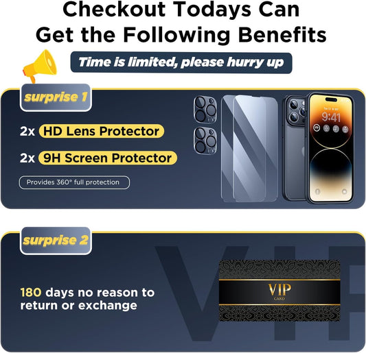 Humixx [5-in-1 stoßfest für iPhone 14 Pro Max Hülle, [2X Displayschutzfolie + 2X Linsenschutz] [Militärischer Fallschutz] Silikon Slim Dünn Durchscheinend Matte iPhone 14 Pro Max Handyhülle 6,7'' Schwarz