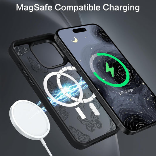 BENTOBEN for Iphone 14 Pro Case,Cute Butterfly Pattern Iphone 14 Pro Magnetic Case [Compatible with Magsafe] Translucent Matte Slim Women Girl Protective Cover Case for Iphone 14 Pro 6.1",Black