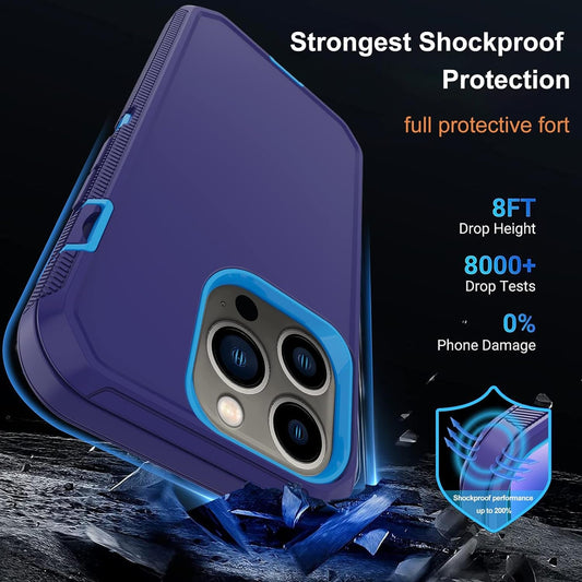 Annymall for Iphone 14 Pro Case with 2 Screen Protector, Heavy Duty Drop Protection Shockproof Full Body 3-Layer Military Rugged Durable Protective Cover for Apple Iphone 14 Pro 6.1" (Blue/Dark)
