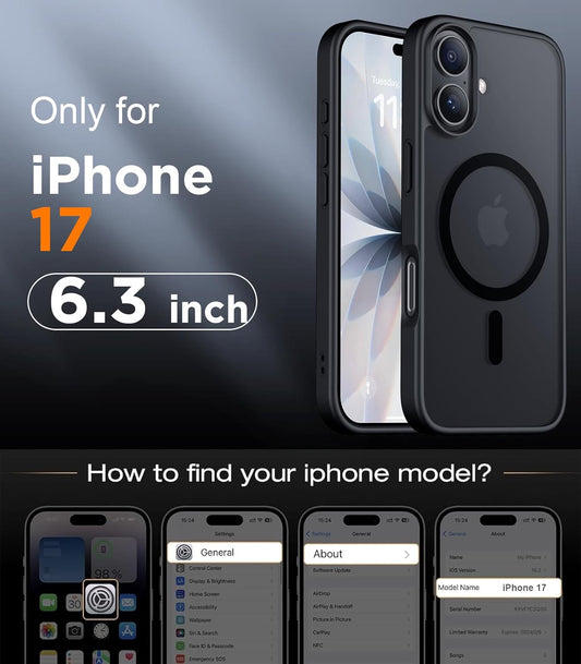 Red2Fire Designed for Iphone 17 Case Magnetic, (Compatible with Magsafe) (Military Grade Drop Protection) Translucent Matte Shockproof Phone Case for Iphone 17 6.3"-Black