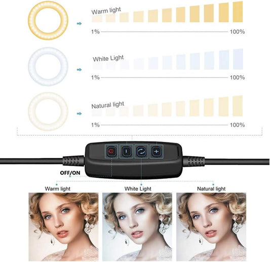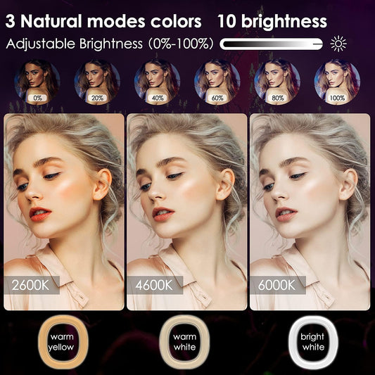 LED-Ringlicht 10" mit Stativ und Telefonhalter, Selfie-Ringlicht, dimmbares Make-up-Ringlicht für Youtube-Videos, Fotografie, Aufnahmen mit 3 Lichtmodi und 10 Helligkeitsstufen