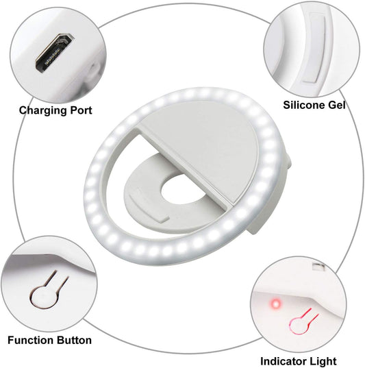 ABLY Clip-on Selfie-Ringlicht mit 36 LEDs, 3-stufig einstellbare Helligkeit, tragbar, wiederaufladbar, Selfie-Füllringlicht, Kreislicht für Telefon, Laptop, Fotografie, Video, Livestream, Make-up, Fülllicht