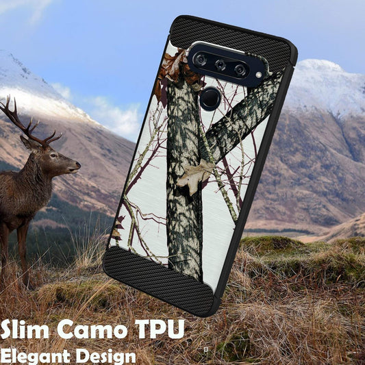 Cases on Deck Weiße Hülle kompatibel mit [LG V40 Thinq] Hunters Series, schlank, keine Masse, Karbonfaser-Textur, schwarzes, flexibles TPU-Material (Snow Hunters Camo)