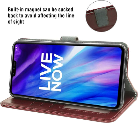Asuwish Kompatibel mit LG V40 Thinq Wallet Case mit Displayschutzfolie aus gehärtetem Glas und Flip Cover Kartenhalter Handyhüllen für LGV40 Storm V 40 Thin Q V40Thinq LG40 40V 40Thinq Damen Herren Rot