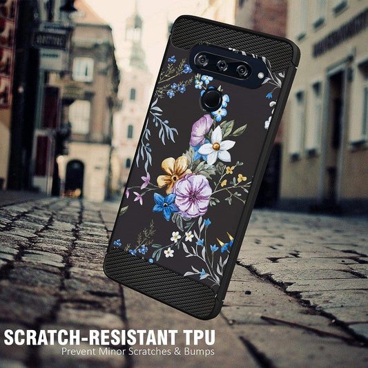 Casesondeck Schutzhülle kompatibel mit [LG V40 Thinq], weiche TPU-Stoßstangenabdeckung, Kohlefaser-Textur, flexibel (Blumen)