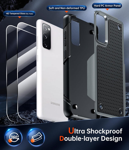 Leyi für Samsung S20 FE Hülle: Samsung Galaxy S20 FE Hülle mit 2 Displayschutzfolien, stoßfest, robust, zweilagig, schützende harte PC-Rückseite und weiche Bumper-Hülle für Galaxy S20FE 5G, Grau